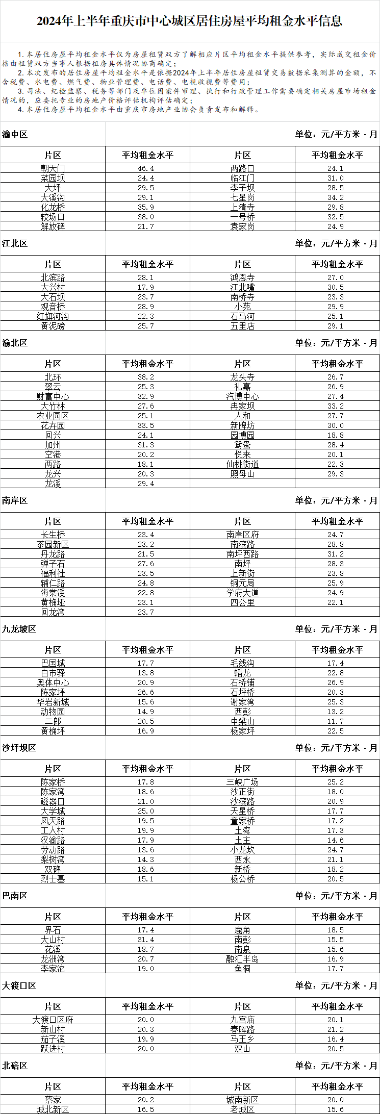 首 页 新闻动态 楼盘展示 市场动态 房地产经纪 专题 蔡家智慧新城 保交楼保交房 "两久"项目2025 自媒体自律联盟 名企及优质楼盘联展 休闲地产 美好家园 美好天赋 复工复产 "两久"项目2024 "白名单"项目融资 通知 资专委/商专委 登记/测绘投诉 协会专区 “金九银十”如期而至,9月重庆中心城区新建商品住房成交环比增长超3成 涉及保交房、租房、“人房地钱”……住建部副部长董建国重磅阐释 “中秋团圆·爱在我家”品质楼盘促销活动圆满结束 中秋品质楼盘促销活动持续火爆 线下展会仅剩最后一天! 您的当前位置 : 主页 > 新闻动态 > 2024年上半年重庆市中心城区居住房屋平均租金水平信息 2024-10-30 12:18 来源:全媒体中心 返回 友情链接 重庆市政府部门网站 重庆网上房地产