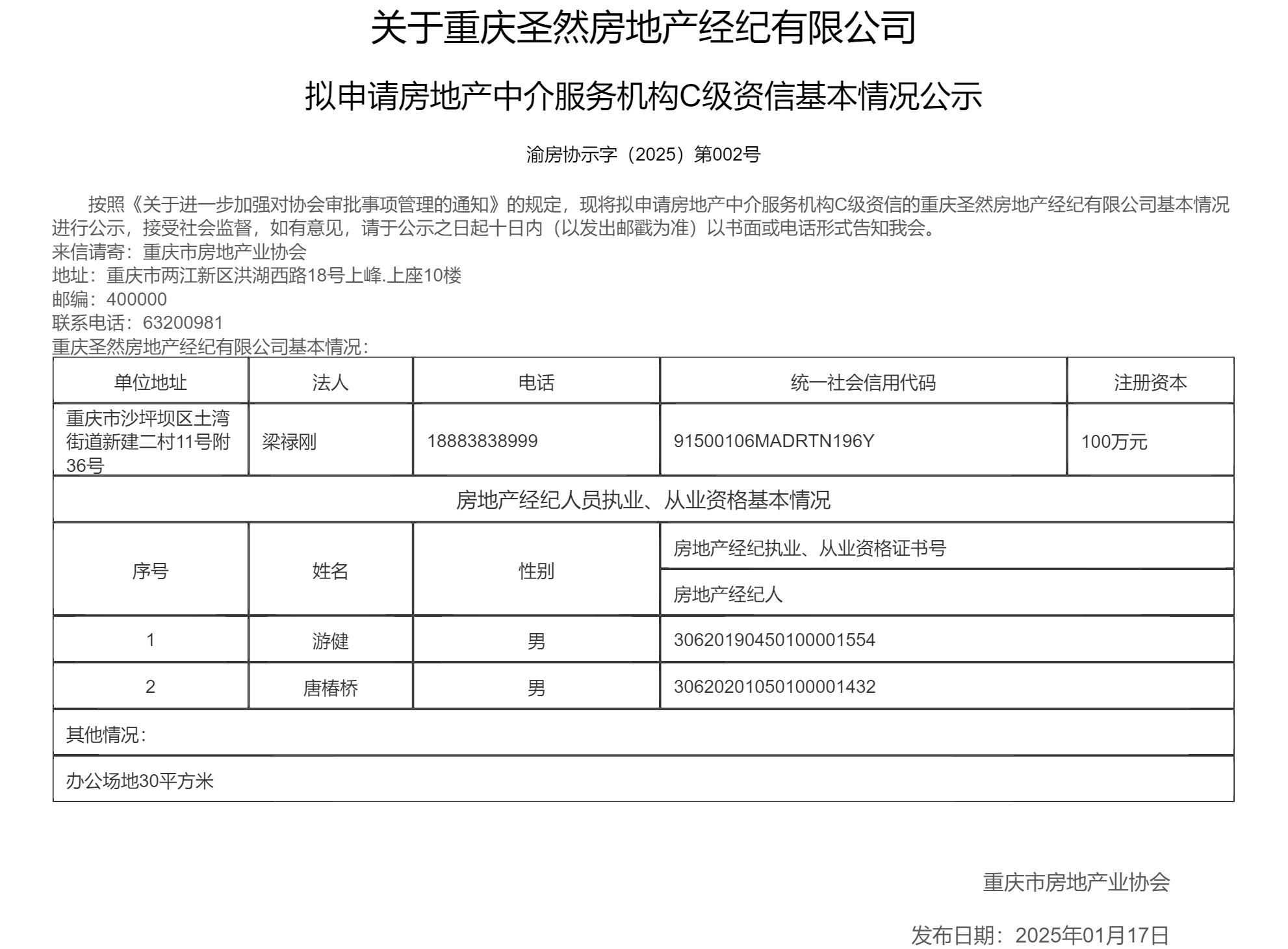 首 页 新闻动态 楼盘展示 市场动态 房地产经纪 专题 蔡家智慧新城 保交楼保交房 "两久"项目2025 自媒体自律联盟 名企及优质楼盘联展 休闲地产 美好家园 美好天赋 复工复产 "两久"项目2024 "白名单"项目融资 通知 资专委/商专委 登记/测绘投诉 协会专区 “金九银十”如期而至,9月重庆中心城区新建商品住房成交环比增长超3成 涉及保交房、租房、“人房地钱”……住建部副部长董建国重磅阐释 “中秋团圆·爱在我家”品质楼盘促销活动圆满结束 中秋品质楼盘促销活动持续火爆 线下展会仅剩最后一天! 您的当前位置 : 主页 > 房地产经纪 > 关于重庆圣然房地产经纪有限公司拟申请房地产中介服务机构C级资信基本情况公示 2025-01-27 11:00 来源:全媒体中心 返回 友情链接 重庆市政府部门网站 重庆网上房地产