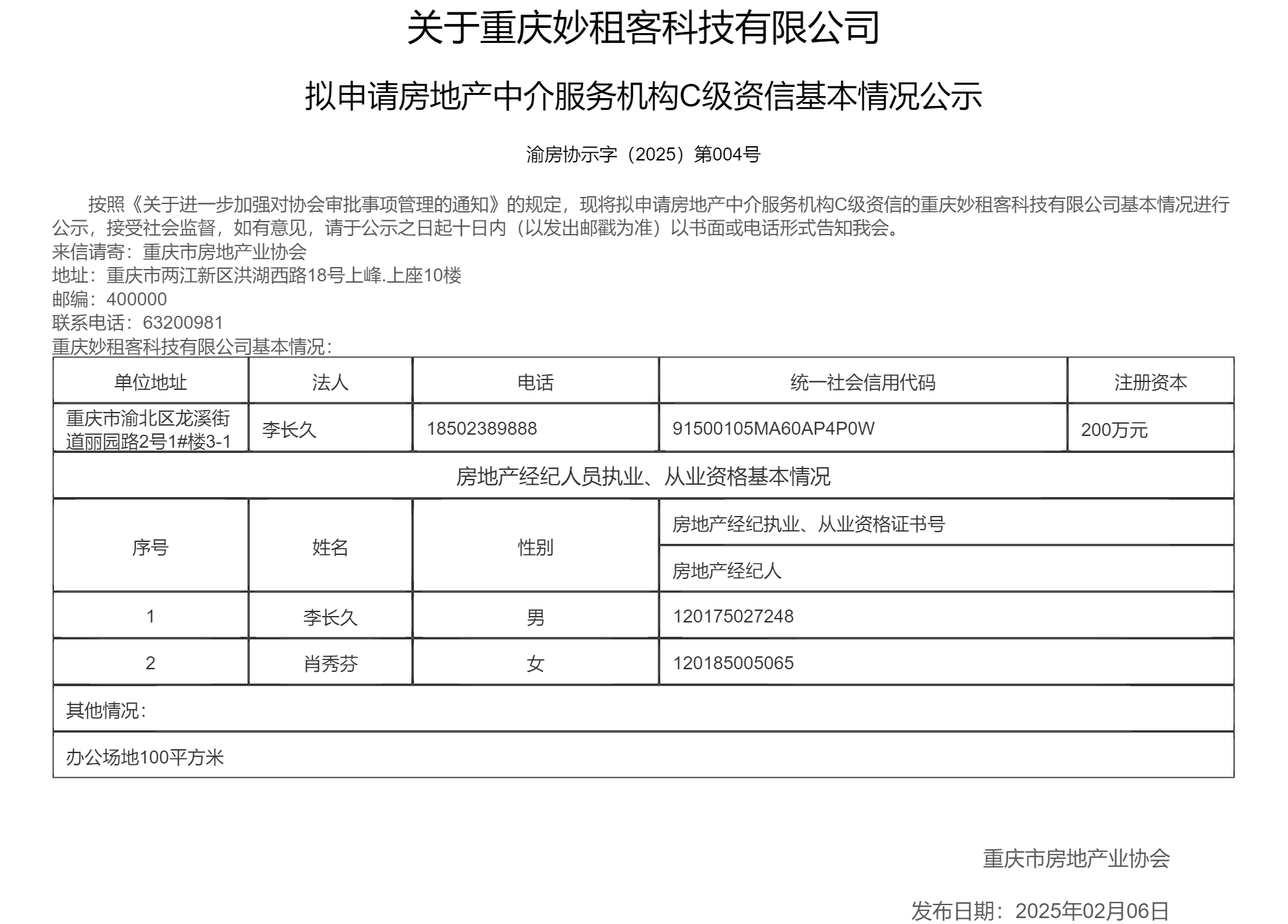 首 页 新闻动态 楼盘展示 市场动态 房地产经纪 专题 蔡家智慧新城 保交楼保交房 "两久"项目2025 自媒体自律联盟 名企及优质楼盘联展 休闲地产 美好家园 美好天赋 复工复产 "两久"项目2024 "白名单"项目融资 通知 资专委/商专委 登记/测绘投诉 协会专区 “金九银十”如期而至,9月重庆中心城区新建商品住房成交环比增长超3成 涉及保交房、租房、“人房地钱”……住建部副部长董建国重磅阐释 “中秋团圆·爱在我家”品质楼盘促销活动圆满结束 中秋品质楼盘促销活动持续火爆 线下展会仅剩最后一天! 您的当前位置 : 主页 > 房地产经纪 > 关于重庆妙租客科技有限公司拟申请房地产中介服务机构C级资信基本情况公示 2025-02-08 11:30 来源:全媒体中心 返回 友情链接 重庆市政府部门网站 重庆网上房地产