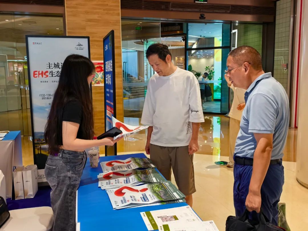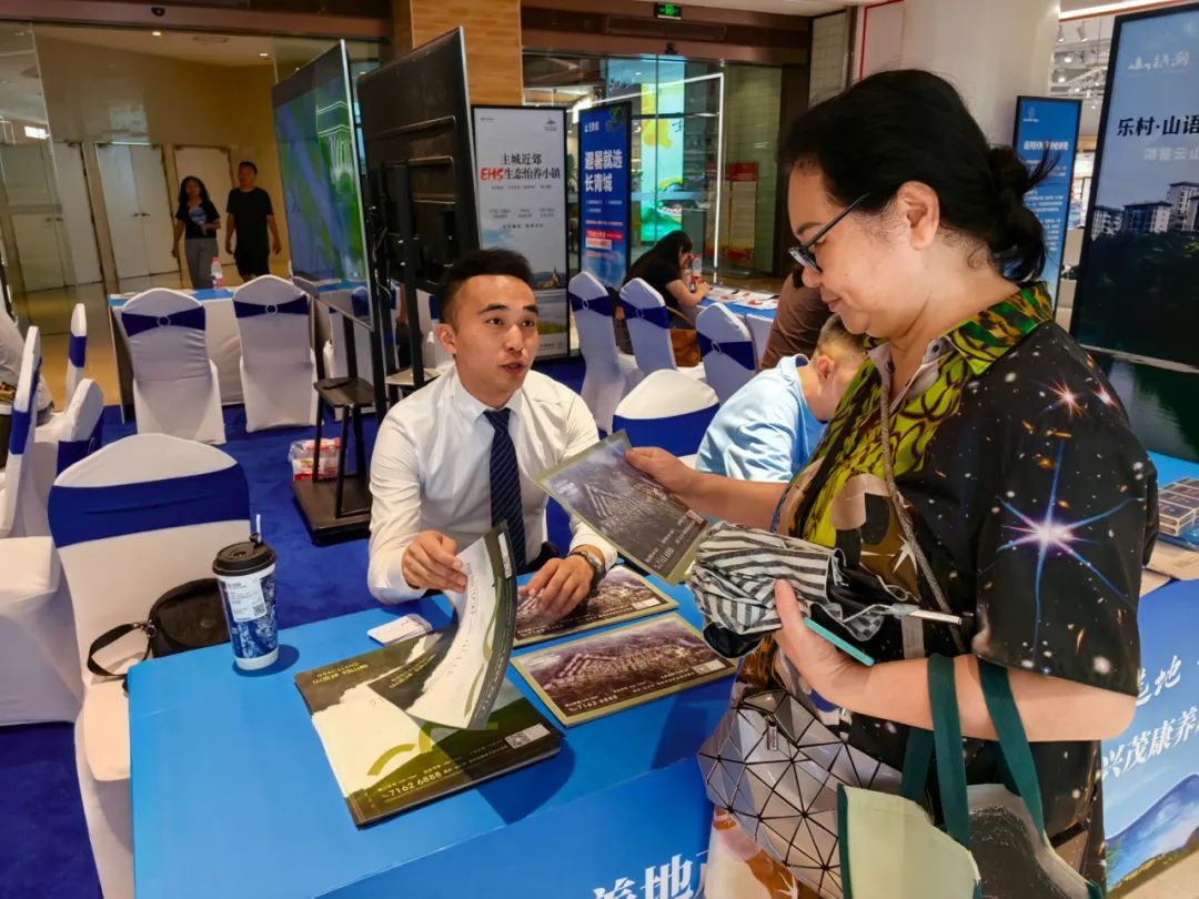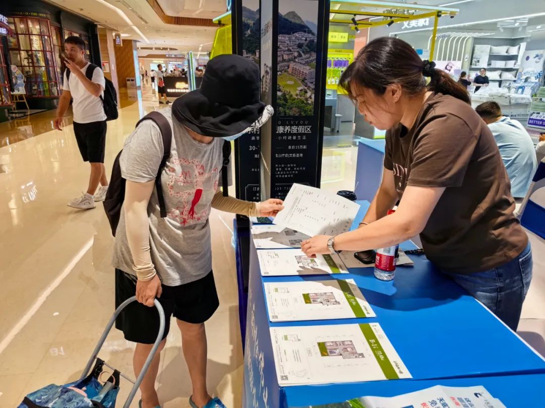 展会现场,LED大屏幕循环播放活动主画面和企业项目宣传片,不少市民被吸引驻足观看、咨询。为了吸引更多市民逛展看房,山王坪归山屿、乐村·云湖康养度假小镇等参展企业工作人员主动前往商场人流量较大的区域派发宣传资料,热情推荐品质康养项目。