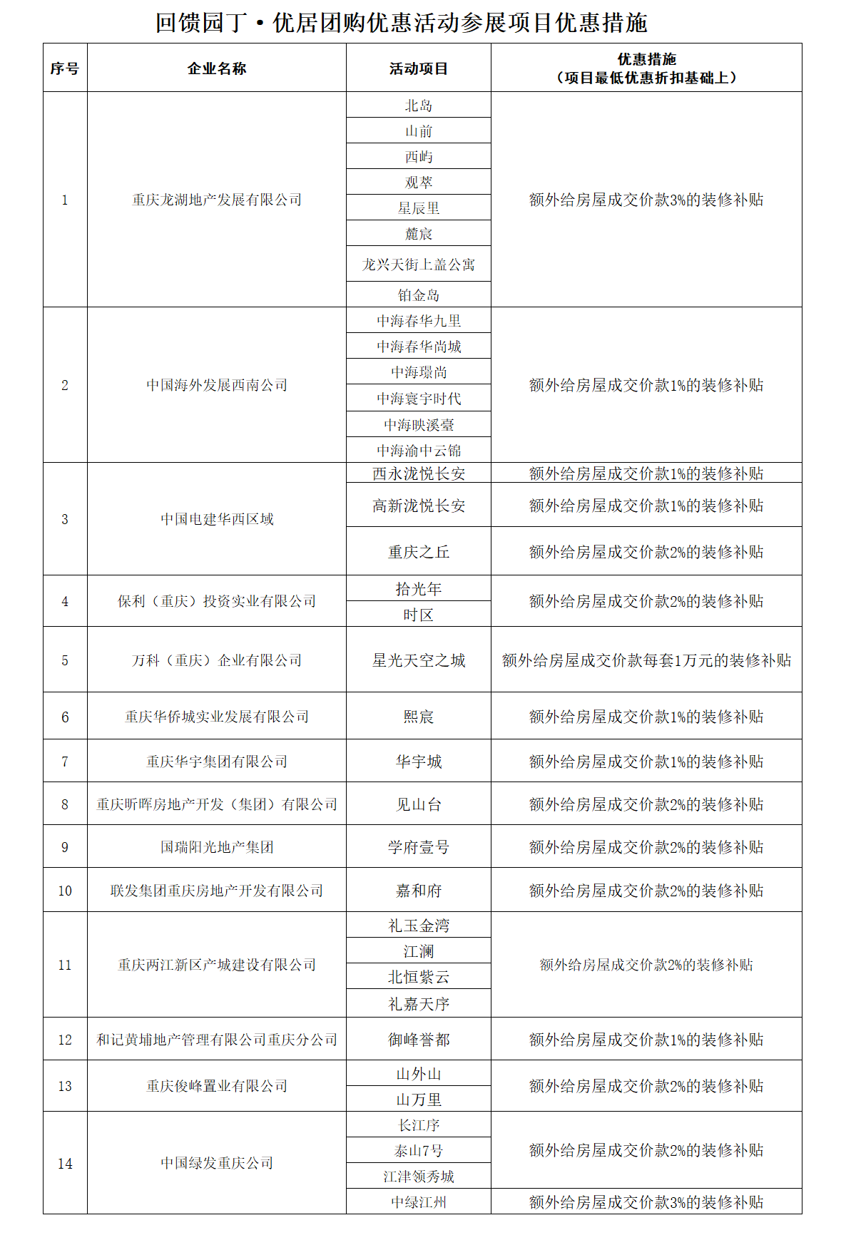 进入“金九银十”,房企推盘节奏加快,高品质项目集中入市。本次教师专属团购活动中,市房协充分发挥行业资源整合优势,精选14家知名头部房企、26个热门品质热销项目参展,堪称重庆楼市品质供给的典型代表。